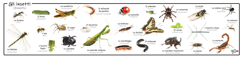 This poster is a great visual resource for teaching children the Italian names of insects. Our easy to download printable poster is perfect for the classroom or a child's bedroom.