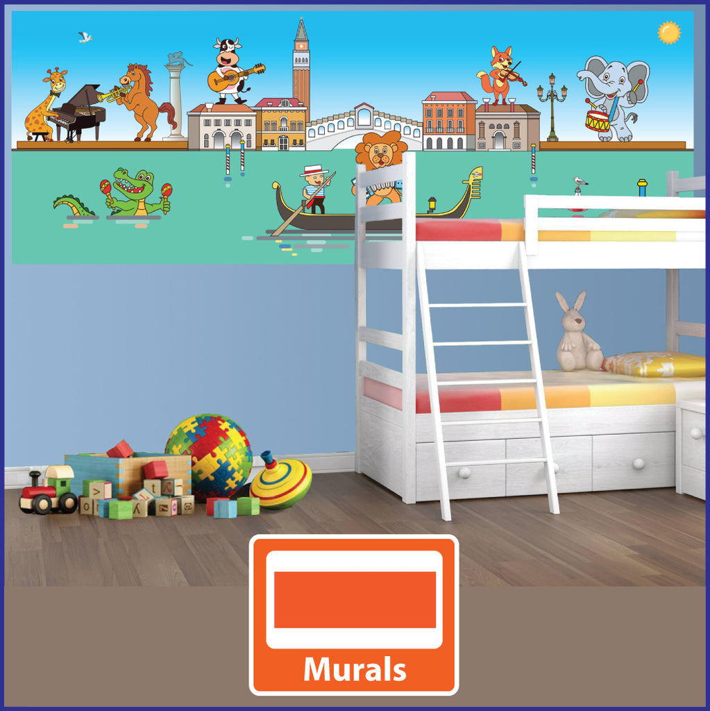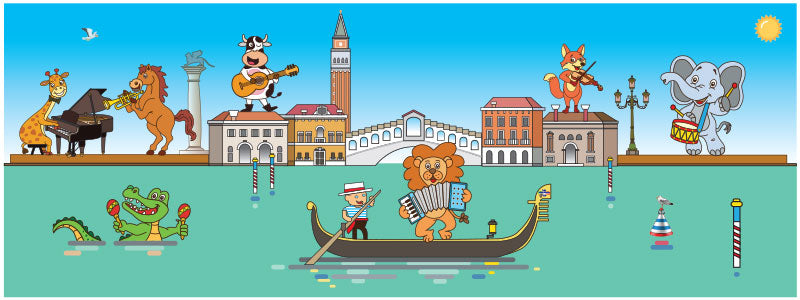 Featuring animals playing musical instruments around the city of Venice this wall mural measures 4 metres by 1.5 metres.